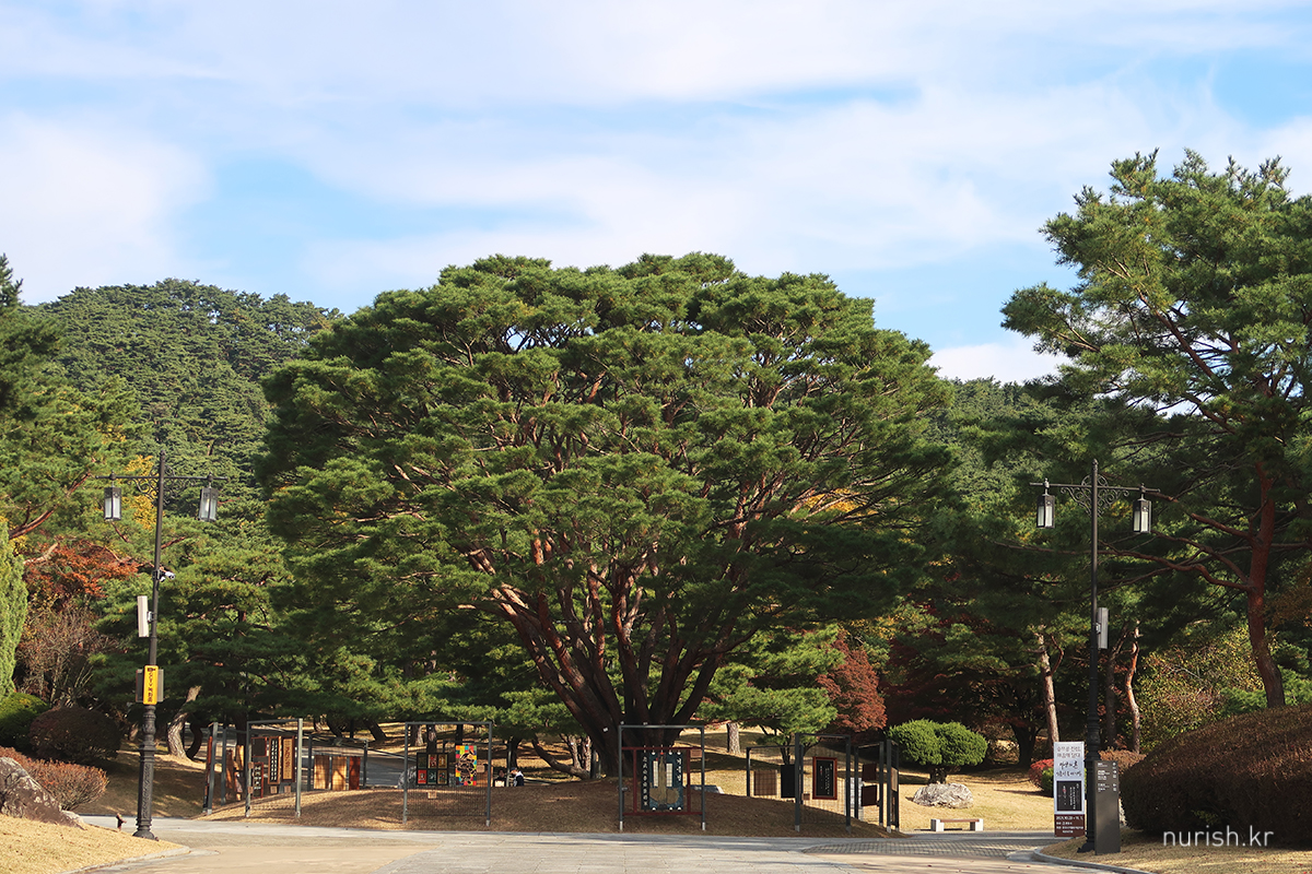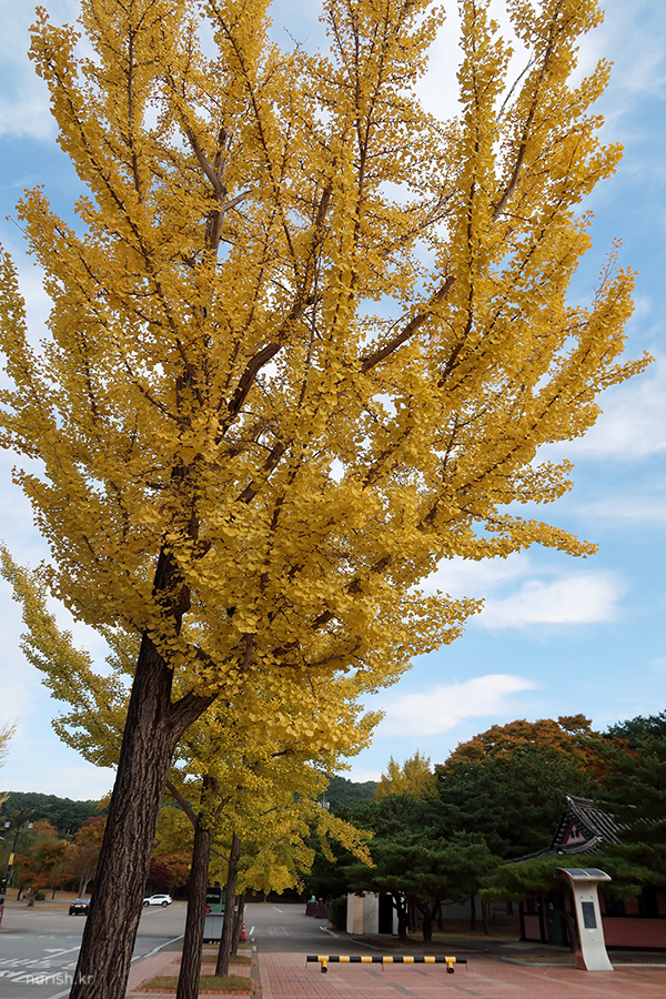 다행히 현충사 주차장은 노랑빛으로 물들어 있다.