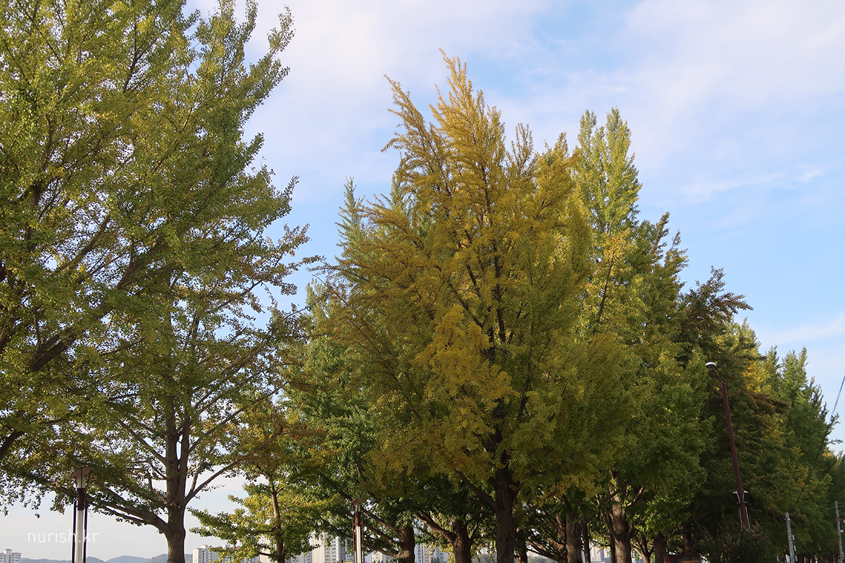 10월 말이면 다 노랑으로 물들었을 줄 알았는데, 이상 기온 탓에 따뜻해서 단풍이 늦는 건지 일찍 지나갔던 한파 탓인지.