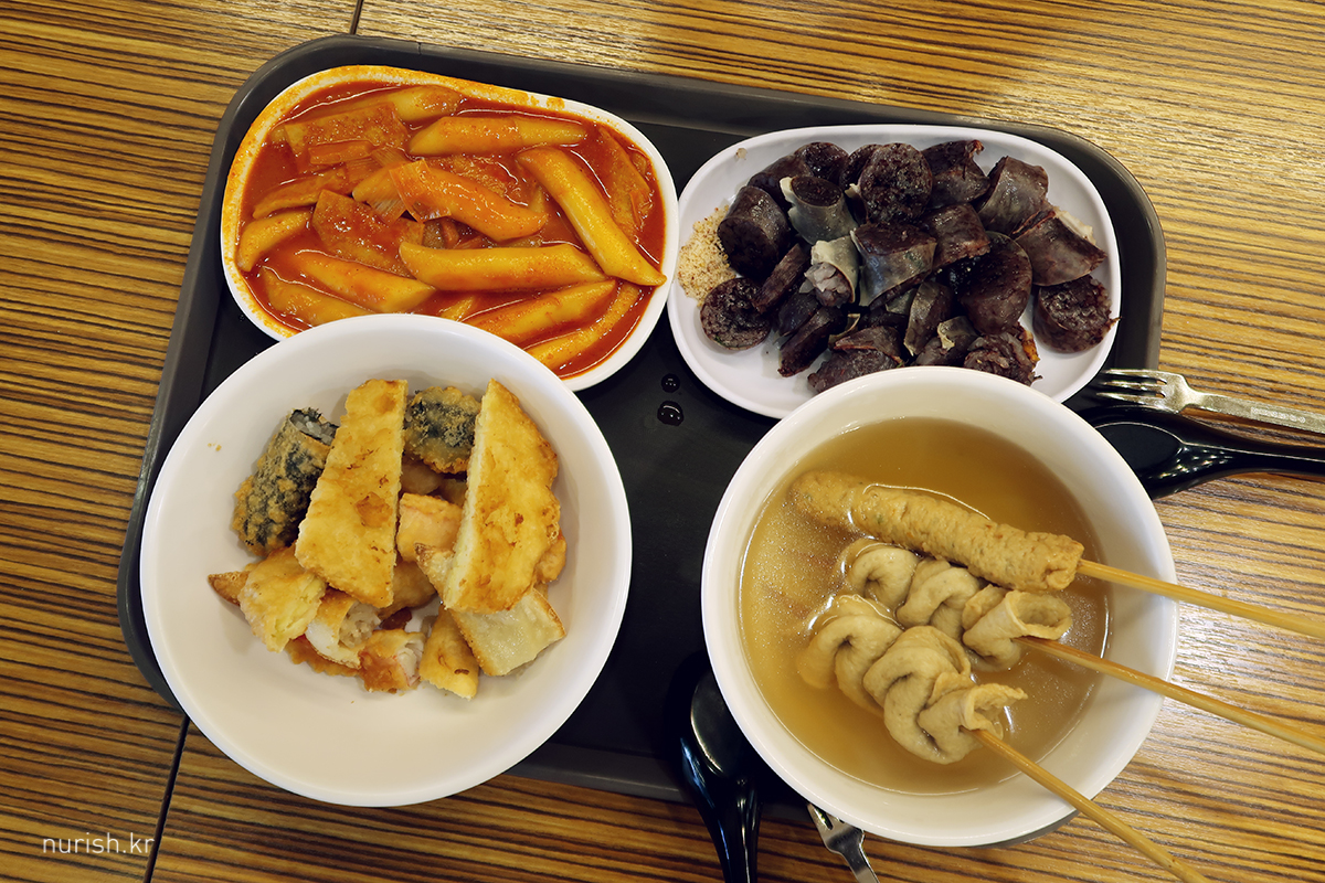 떡볶이 1인분, 튀김 1인분, 순대 1인분, 어묵 1인분