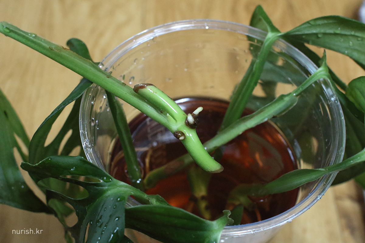 에피바리 삽수 뿌리 성장세가 생각보다 느린데, 새순에서 새 뿌리 나는 거 보면 기특하고 신기하다.