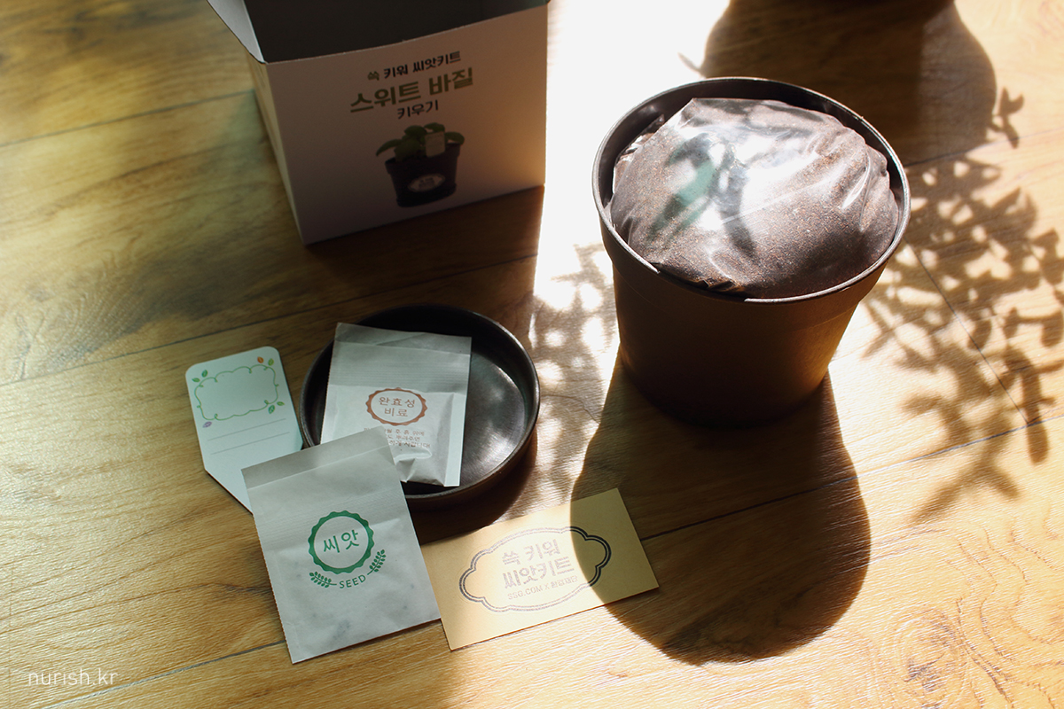 예전에 쓱에서 한 이벤트에 당첨되어서 받은 쓱 키워 씨앗키트 - 스위트 바질.