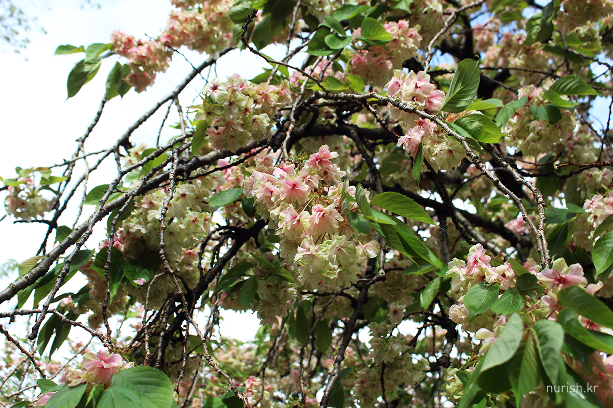 청벚꽃은 피어나 시간이 지나면 분홍빛이 올라오는 것 같다. 작년에 꽃 필 무렵에 왔을 때는 다 연두색이었는데, 지기 전에 왔더니 연두와 분홍이 절묘하게 섞여 또다른 매력을 발산한다.