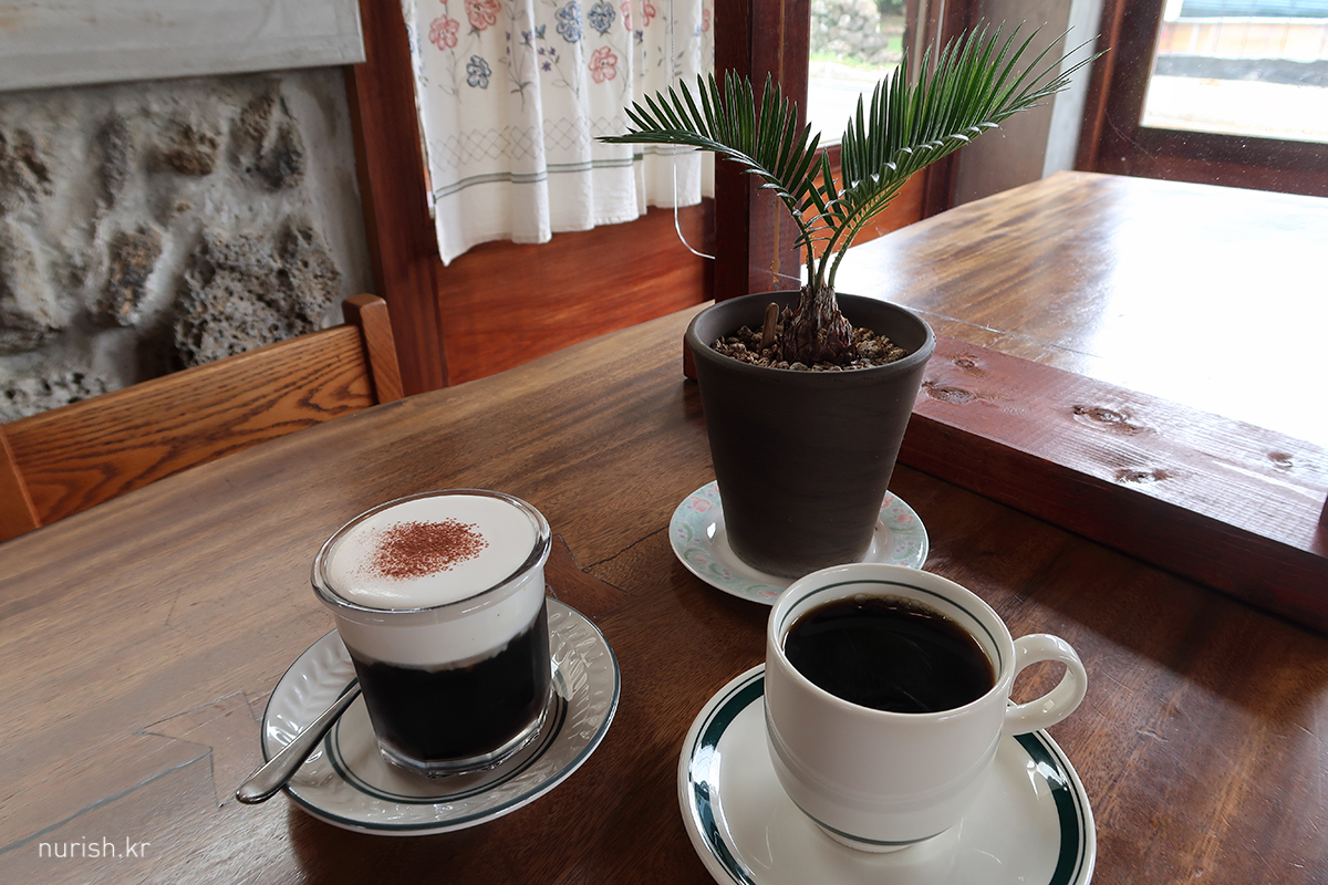 따뜻한 아메리카노와 아이스 아인슈페너, 오늘은 배가 불러서 찹쌀구이는 패스.