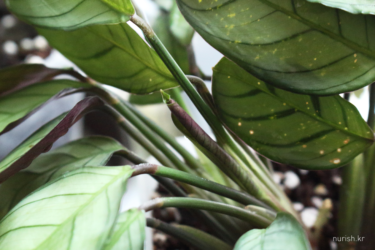 칼라데아처럼 잎 뒷면은 보라색