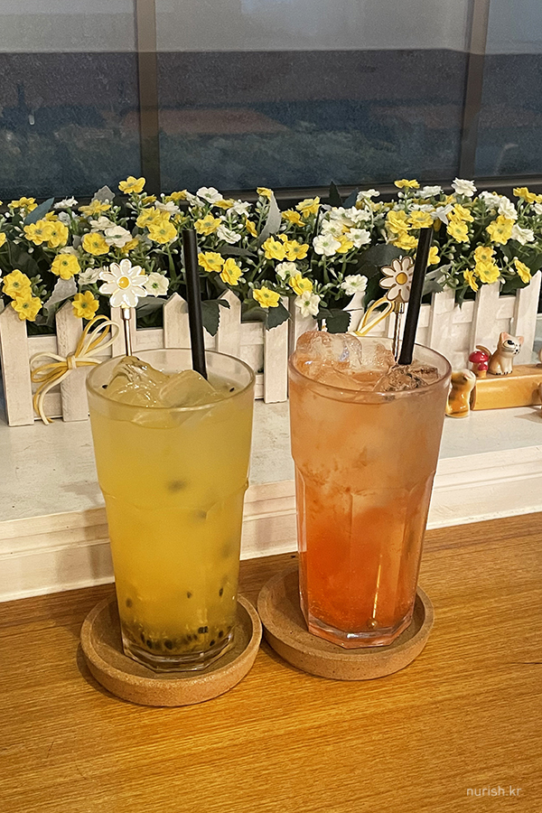 카페에는 요로코롬 귀여운 강아지가 있다.