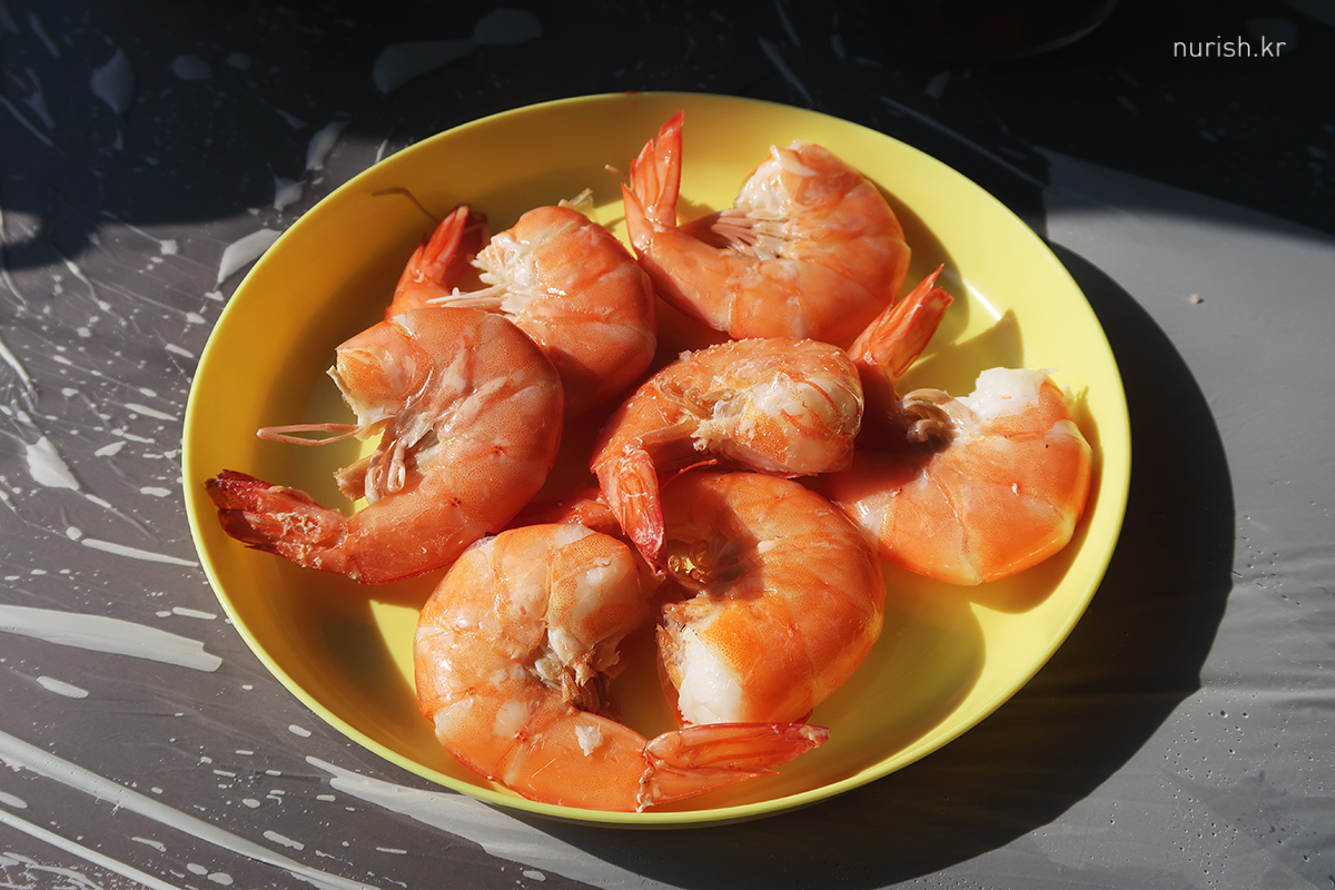 너무 배불러서 새우 머리는 집에 가져와서 저녁에 에어프라이기에 구워 먹었다.