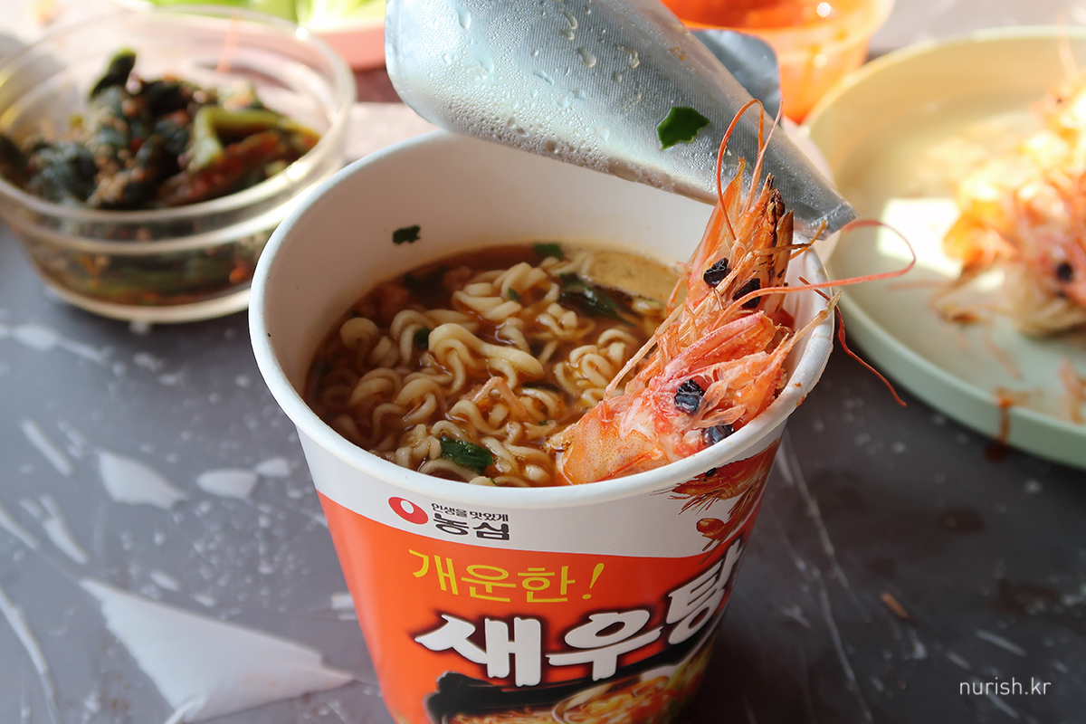 새우 육수가 준비되어 있다는 이야기를 듣고 사 간 새우탕으로 마무리.
