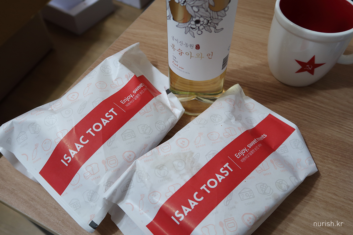 점심을 든든히 먹었더니 배가 썩 고프지 않아서 간단하게 때우려고 사 온 이삭토스트