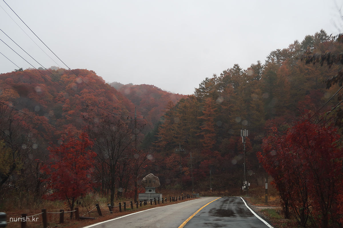 인제는 이미 단풍 시즌이 끝난 것처럼 보였는데, 그래도 필례약수터에 오니까 울긋불긋한 잎이 남아 있었다.