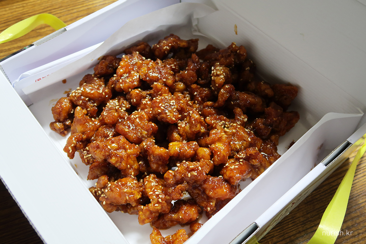 집에 가서 먹을 닭강정 한 상자 사들고