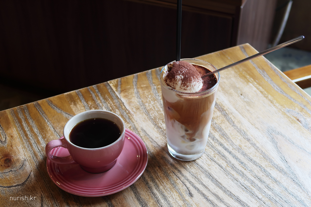 두 번째 방문, 오늘은 드립 커피 - 원두는 산미 좋다고 했더니 추천해 주신 '콜롬비아 허니 시트러스', 바닐라아이스크림이 퐁당 담긴 썸머라떼