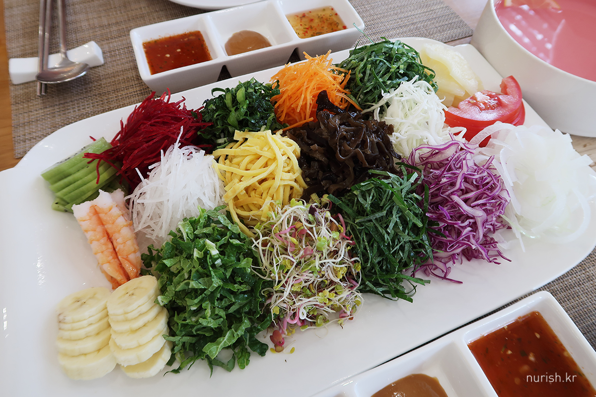 월남쌈세트 하나는 양지쌀국수, 하나는 매운토마토쌀국수