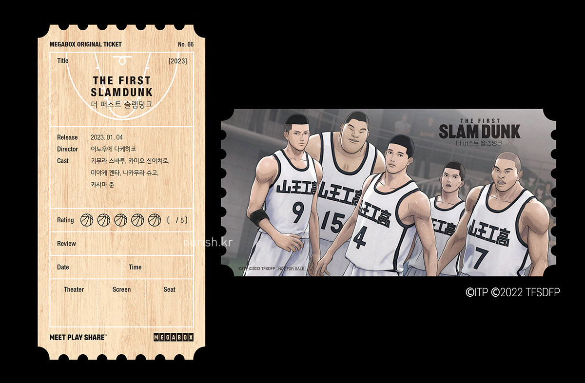 수집용 오리지널 티켓 북을 감상하다가, 아래 한 칸씩 비어 있는 것도 마음이 쓰이고, 산왕 버전은 없는 것도 너무 아쉽게 느껴져서 <더 퍼스트 슬램덩크> 오리지널 티켓을 직접 만들기로 마음먹었다. 요즘은 개인 제작이 참 쉽더라. 좋은 세상☆ 마침 저번에 미니 슬로건 만들었던 레드프린팅에서 오리지널 티켓 소량 제작을 취급하고 있었다. 컷팅 가공 때문에 가격은 싸지 않지만 ㅜㅜ 이왕 주문하는 거 내친김에 우리 애들 얼굴 들어간 원작 버전 일러스트 오리지널 티켓도 만들고 싶어졌다.