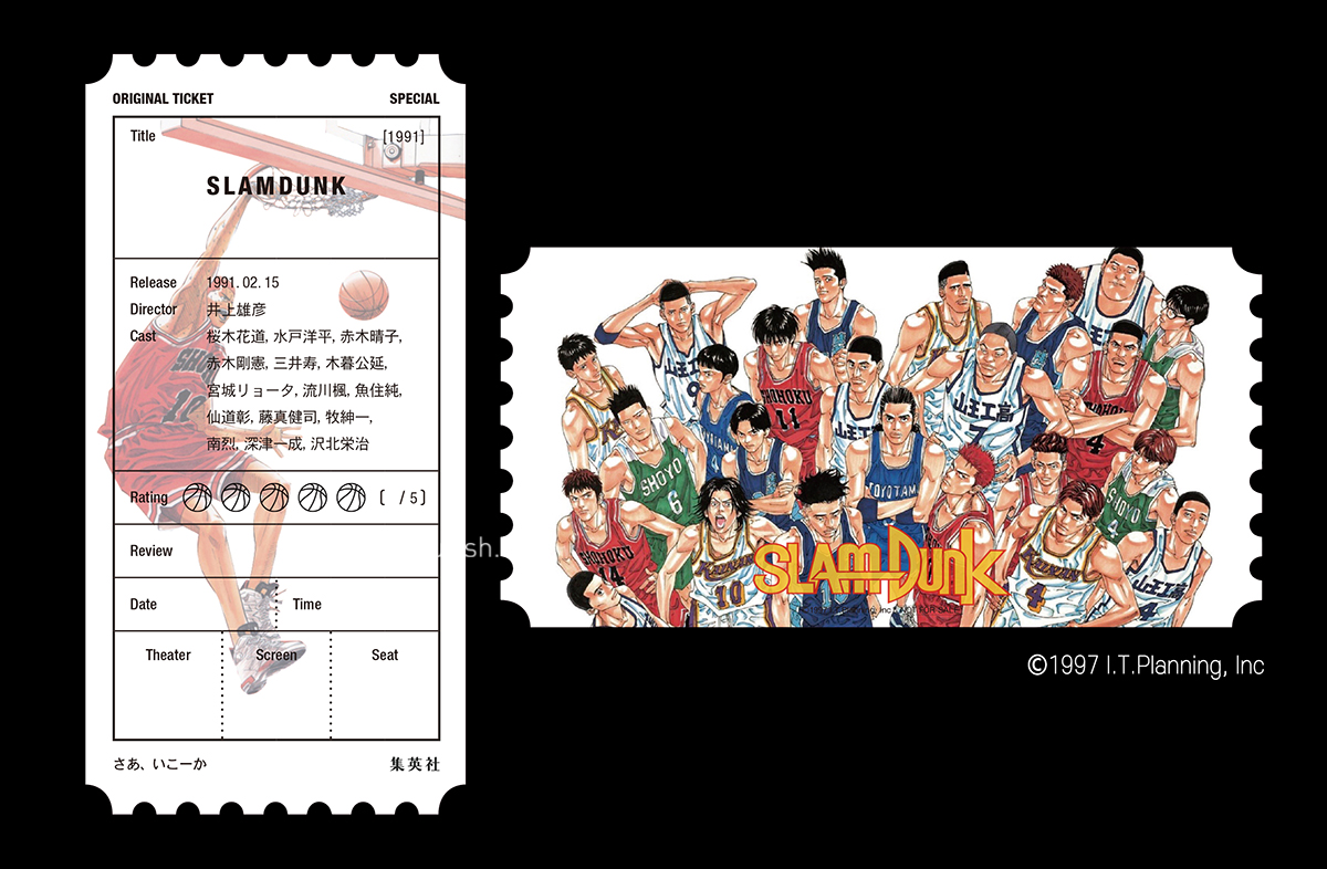 <슬램덩크> 원작 버전 티켓은 첫 번째 화보집에 실려 있는 삽화인데, 오른쪽 아래 끝에 있던 능남 경태는 잘렸다. 미안ㅜㅜ