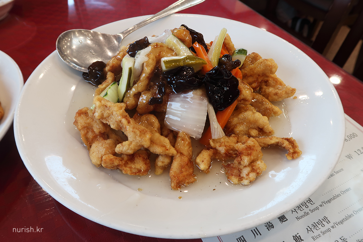 서울행 버스 타려면 저녁까지 먹을 수는 없어서 군만두까지 주문하여 배를 가득 채웠다. 돼지고기에 옥수수, 완두콩 등이 섞여 있던 독특한 군만두.