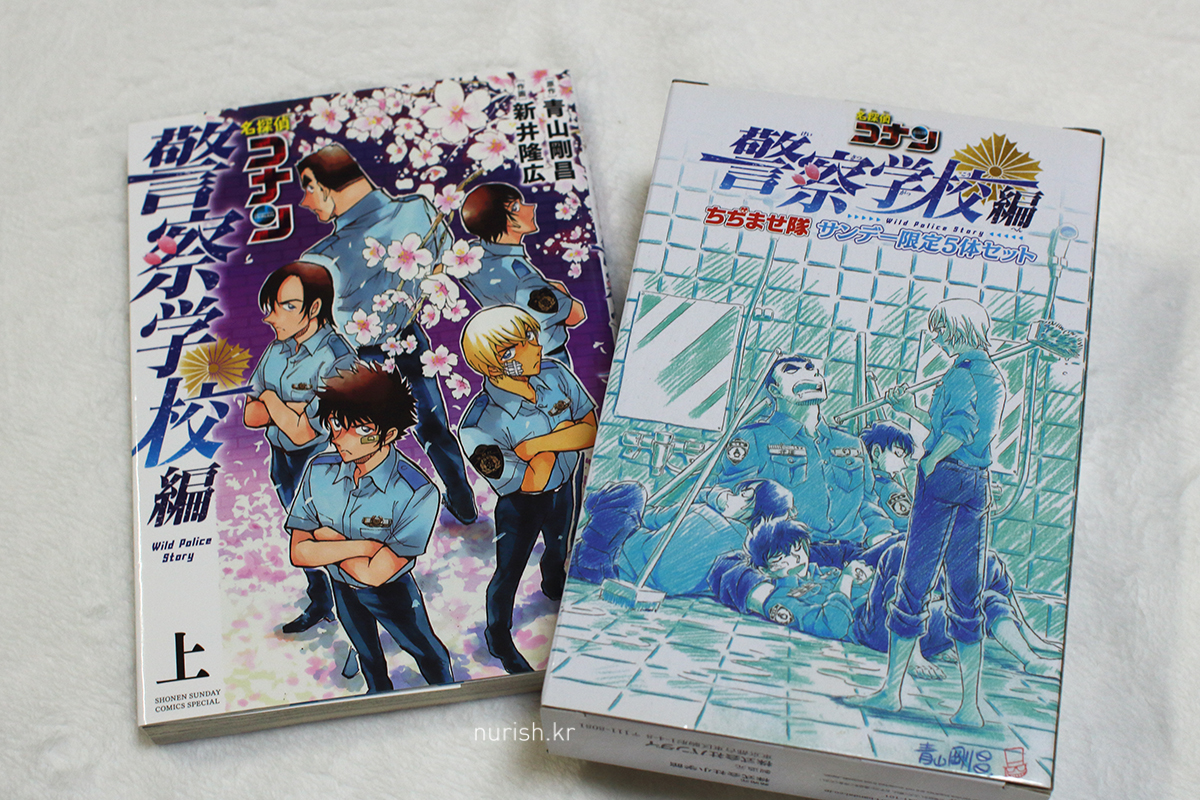 데려올지 말지 고민하다가 결국 못 참은 명탐정 코난 치지마세 주간 소년 선데이 한정판 경찰학교편. 《주간 소년 선데이》 2020년 6월에 발행된 27·28 합병호에 응모하면 구입할 수 있던 세트다.