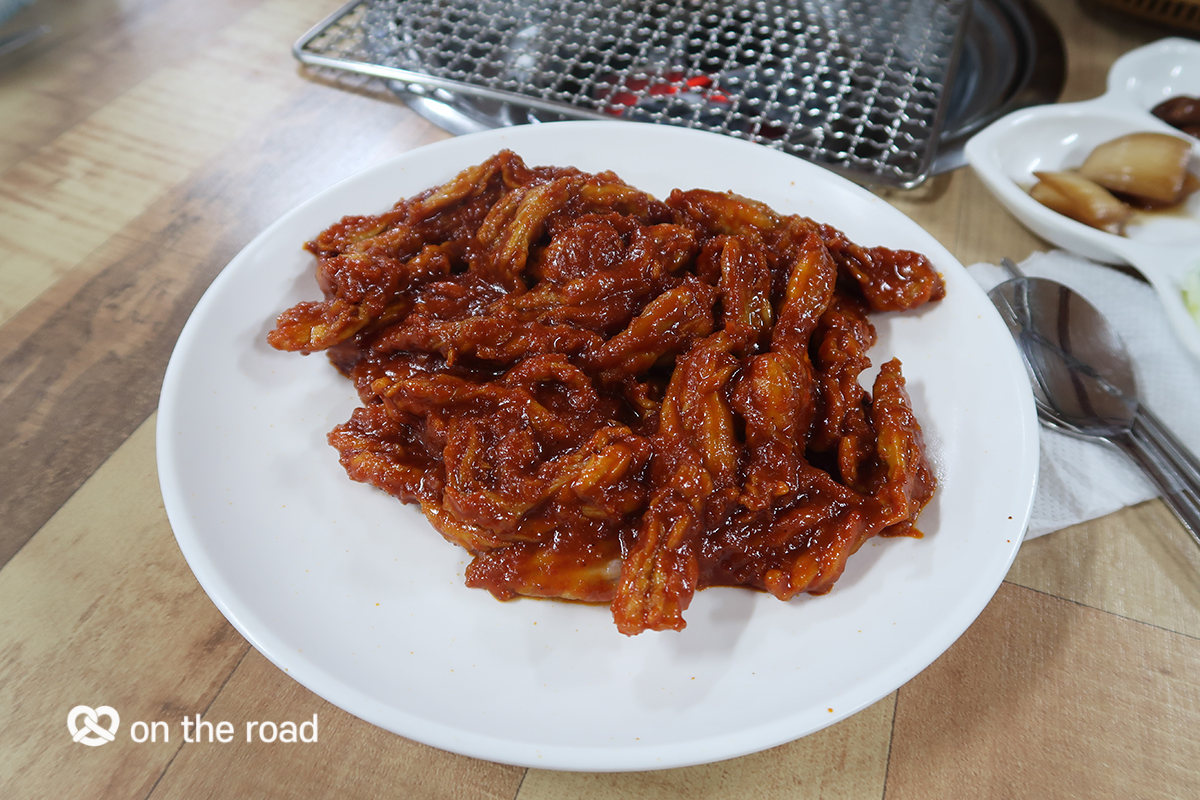 닭발이 유명한 곳이지만 우리가 주문한 음식은 닭목살 2인분. 쫄깃쫄깃한 닭목살에 매콤한 양념이 무척 중독적인 맛이다.